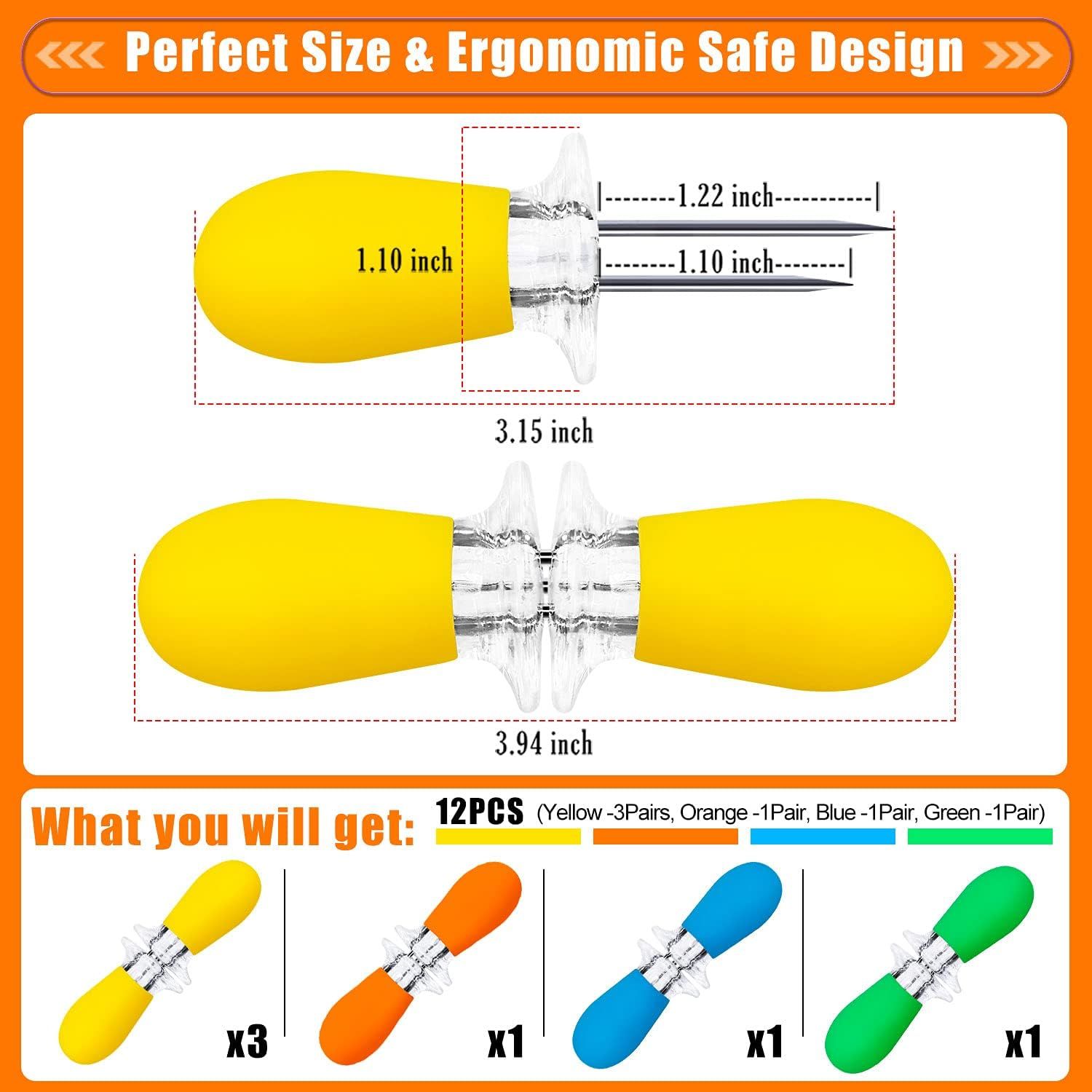 12 Pcs/6 Pairs Corn Holders, Stainless Steel Corn Cob Holders Corn on The Cob Skewers for BBQ Twin Pin Sweetcorn Holders, Interlocking Design Corn Skewers Forks for Home Cooking BBQ,4 Colors