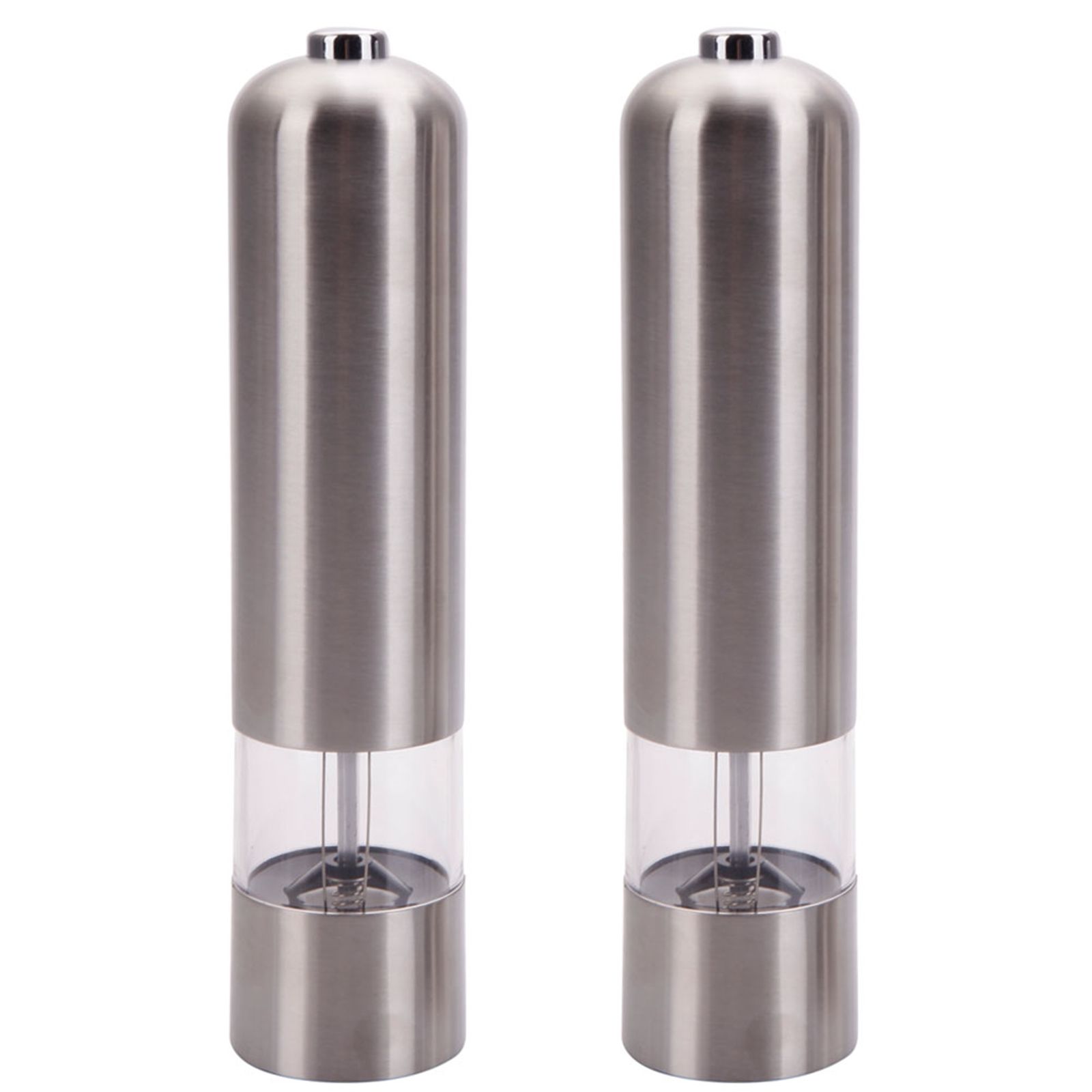 2pcs Stainless Steel Electric Automatic Pepper Mills Salt Grinder Silver 2pcs Stainless Steel Electric Automatic Pepper Mills Salt Grinder Silver 2pcs Stainless Steel Electric Automatic Pepper Mills Salt Grinder Silver