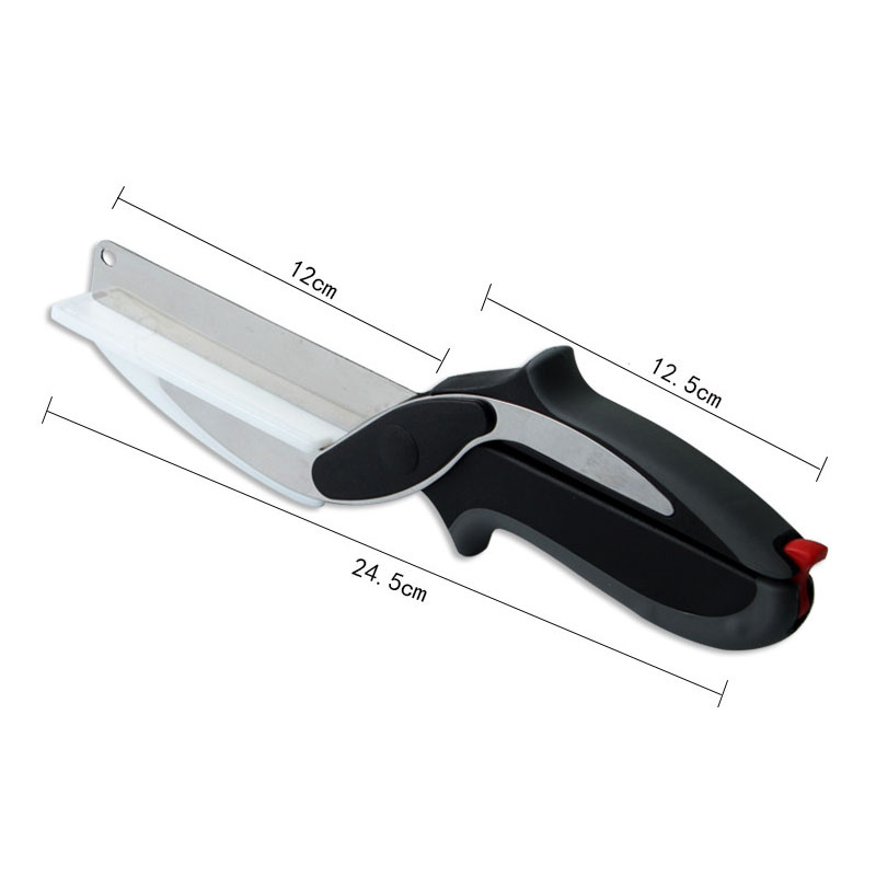 Home > Knife with Cutting Board 2-in-1 Clever Food Chopper Cutter Smart Stainless Steel Built-in for Chopping Fruits Vegetables Meats Cheese Kitchen Gadget