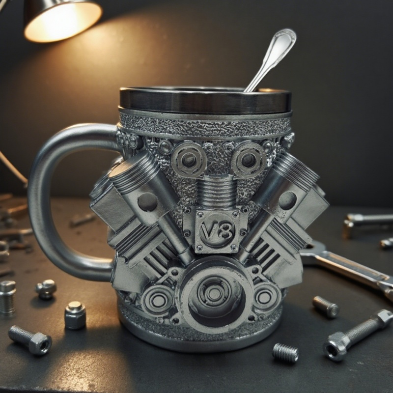 Home > Cool 3D V8 Engine Design Mug - Unique Mechanical Style Cup for Car Enthusiasts