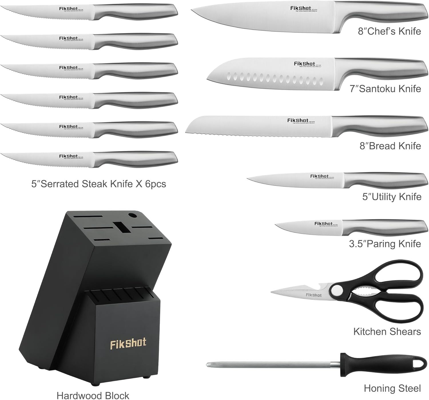Kitchen Knife Set, Premium Stainless Steel Knife Block Set,