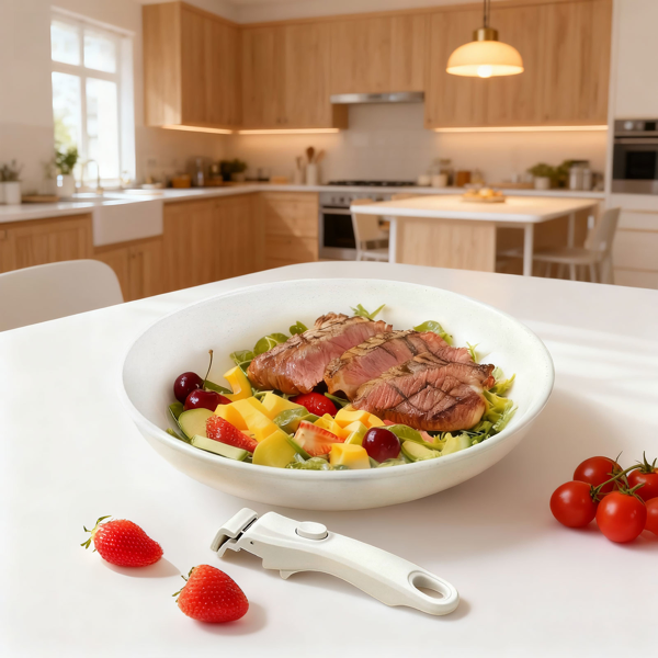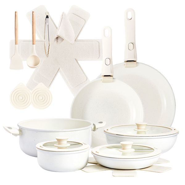 Home > 22-Piece Non-Stick Cookware Set, 6 Pots & 3 Lids, Removable Handles, Oven & Dishwasher Safe, Includes 28cm Soup Pot, Cream White Aluminum