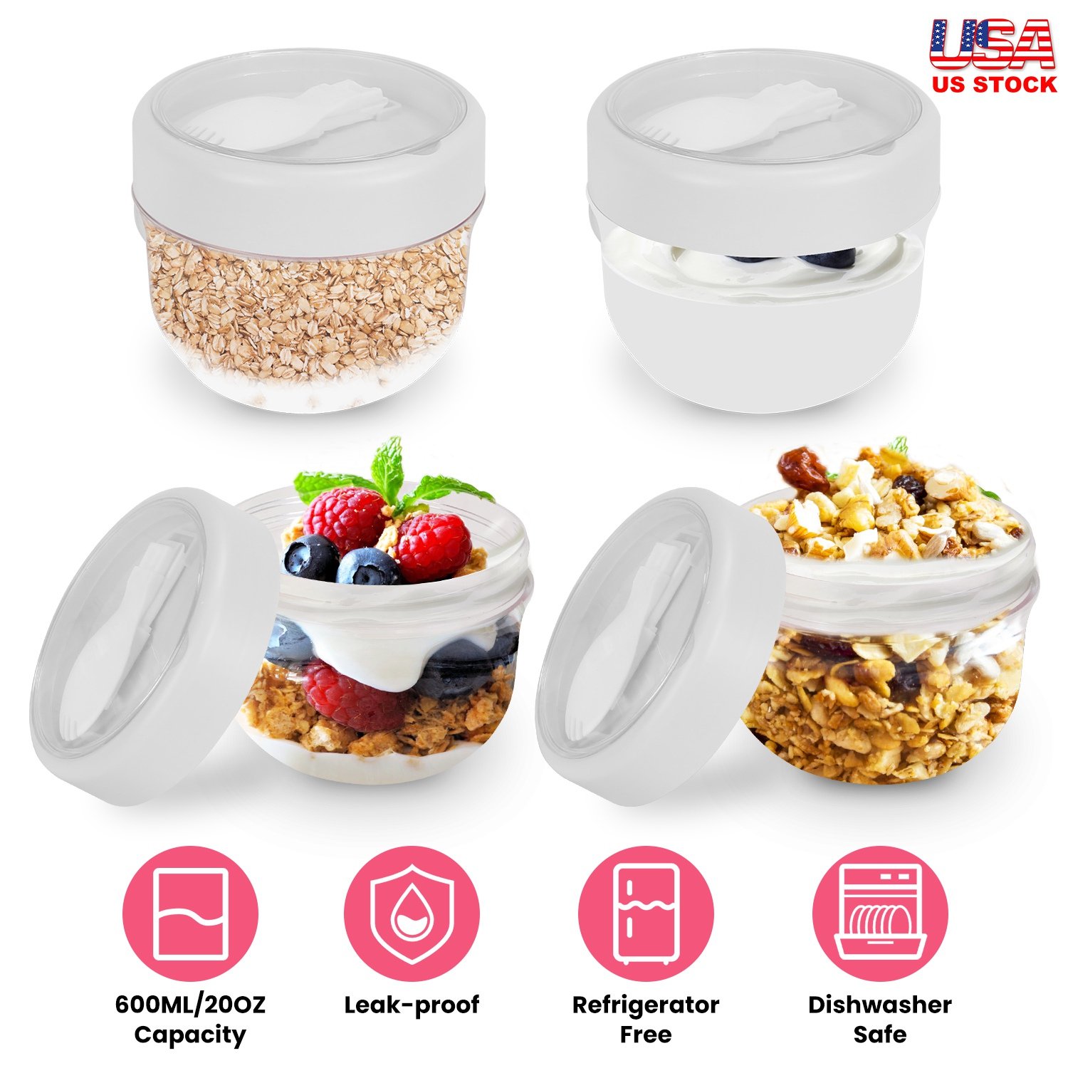 Home > 4Pcs Overnight Oats Containers with Lids and Folding Spoons 20OZ Portable Leak-proof Oats Jar For Milk Vegetable and Fruit Salad Yogurt Breakfast Cere