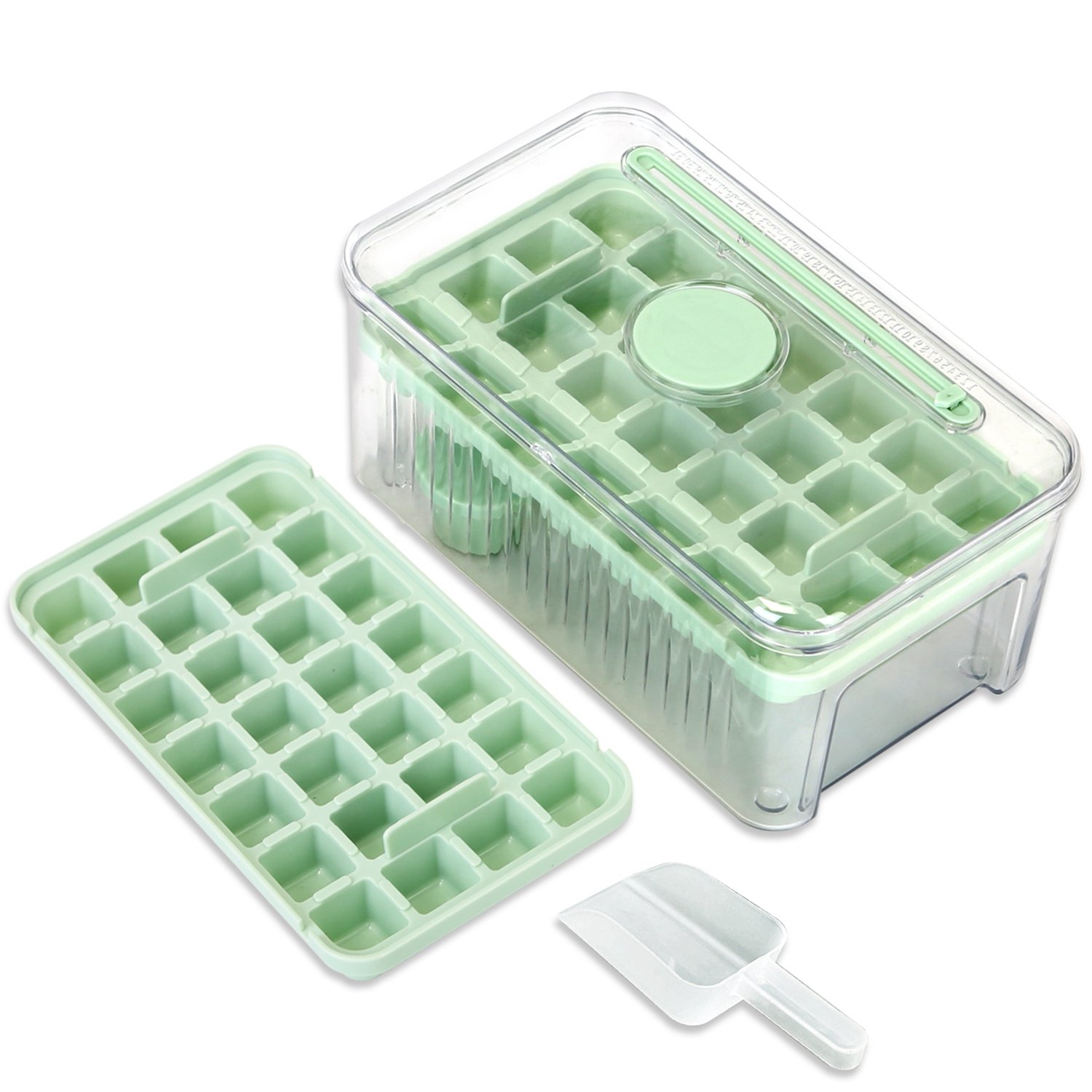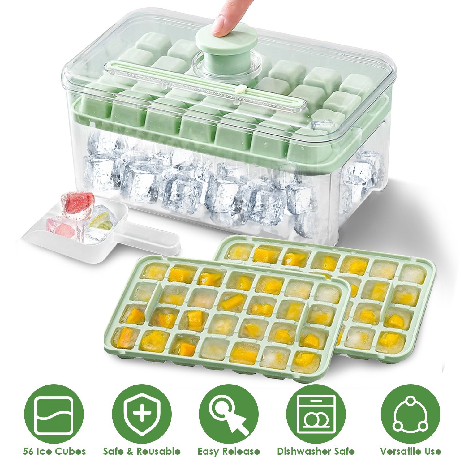 Home > Ice Cube Tray With Lid And Bin Plastic Ice Trays Pop Ice Mold 2 Ice Cube Trays with Scoop Easy Release Stackable Dishwasher Safe Produce 56 Ice Cubes