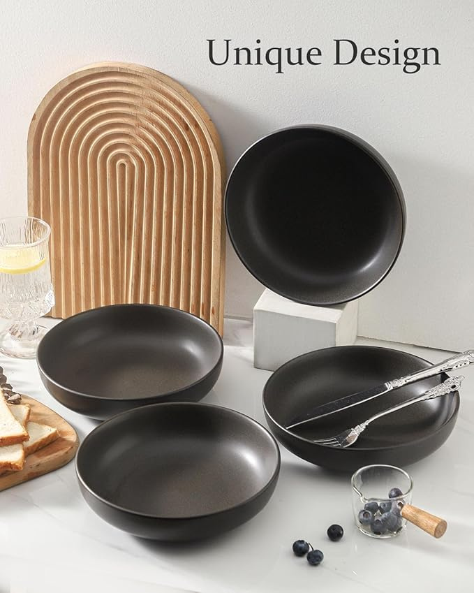 Stoneware Pasta Bowls, 34 oz Large Salad Bowl Set of 4, Ceramic Serving Bowls for Ramen, Pasta, Fruit, Cereal, Dinner, Wide and Shallow Bowls