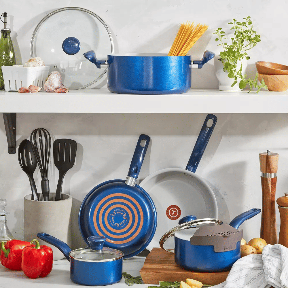 T-fal Simply Cook Ceramic Cookware, 12pc Set, Blue T-fal Simply Cook Ceramic Cookware, 12pc Set, Blue T-fal Simply Cook Ceramic Cookware, 12pc Set, Blue